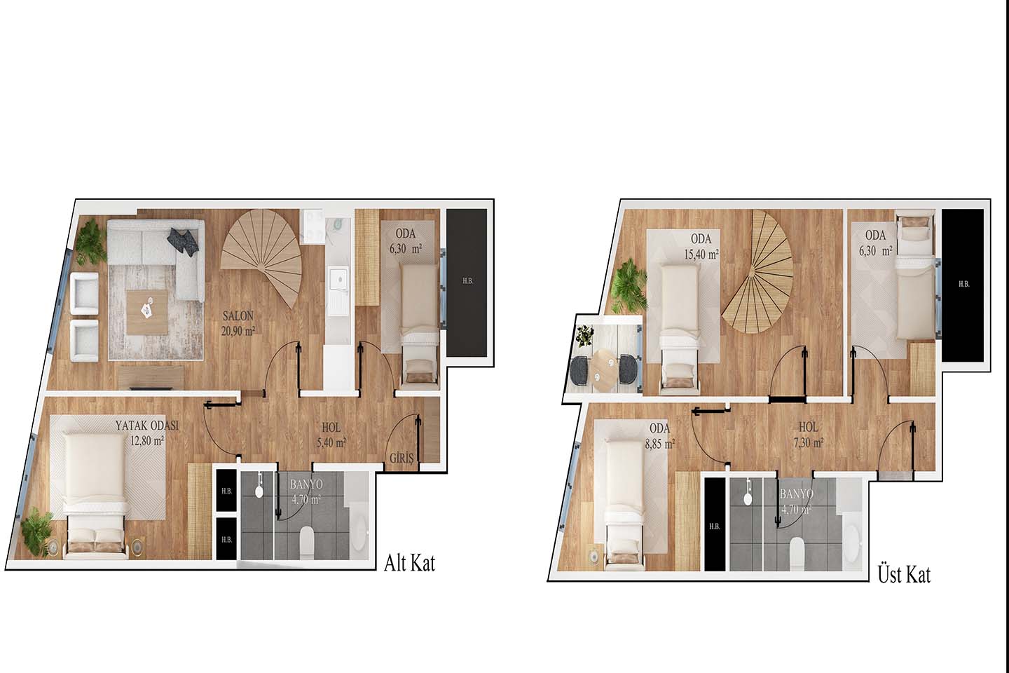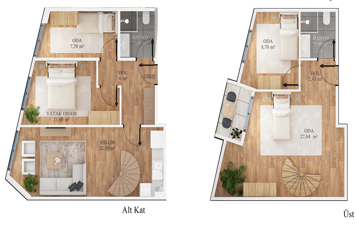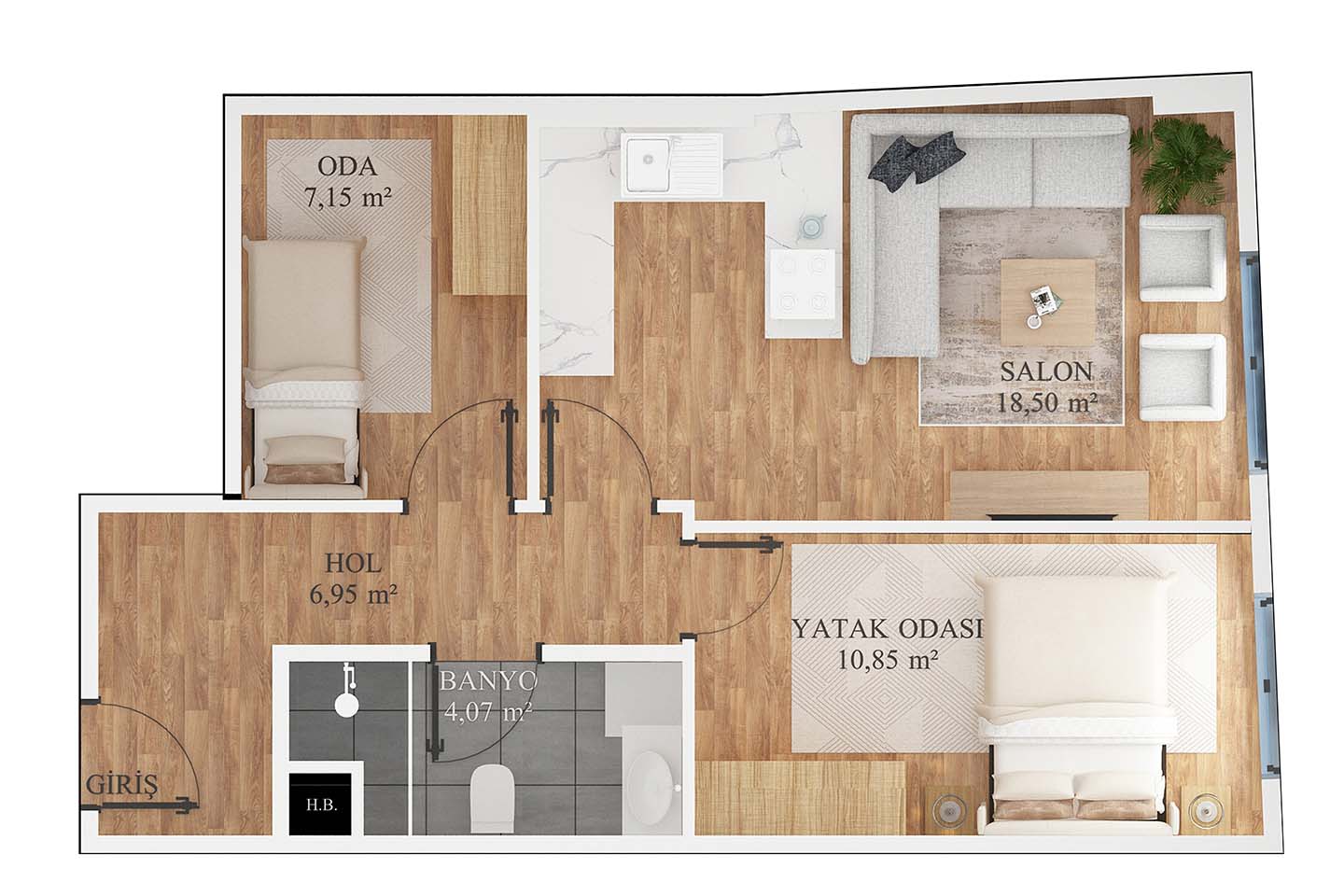 يقدم المشروع شققًا عصرية مزودة بوسائل راحة فاخرة , حيث يتميز بتصاميم متنوعة للشقق، بما في ذلك شقق 1+1، 2+1، و3+2، و5+1، بمساحات تتراوح بين 87 و175 مترًا مربعًا.