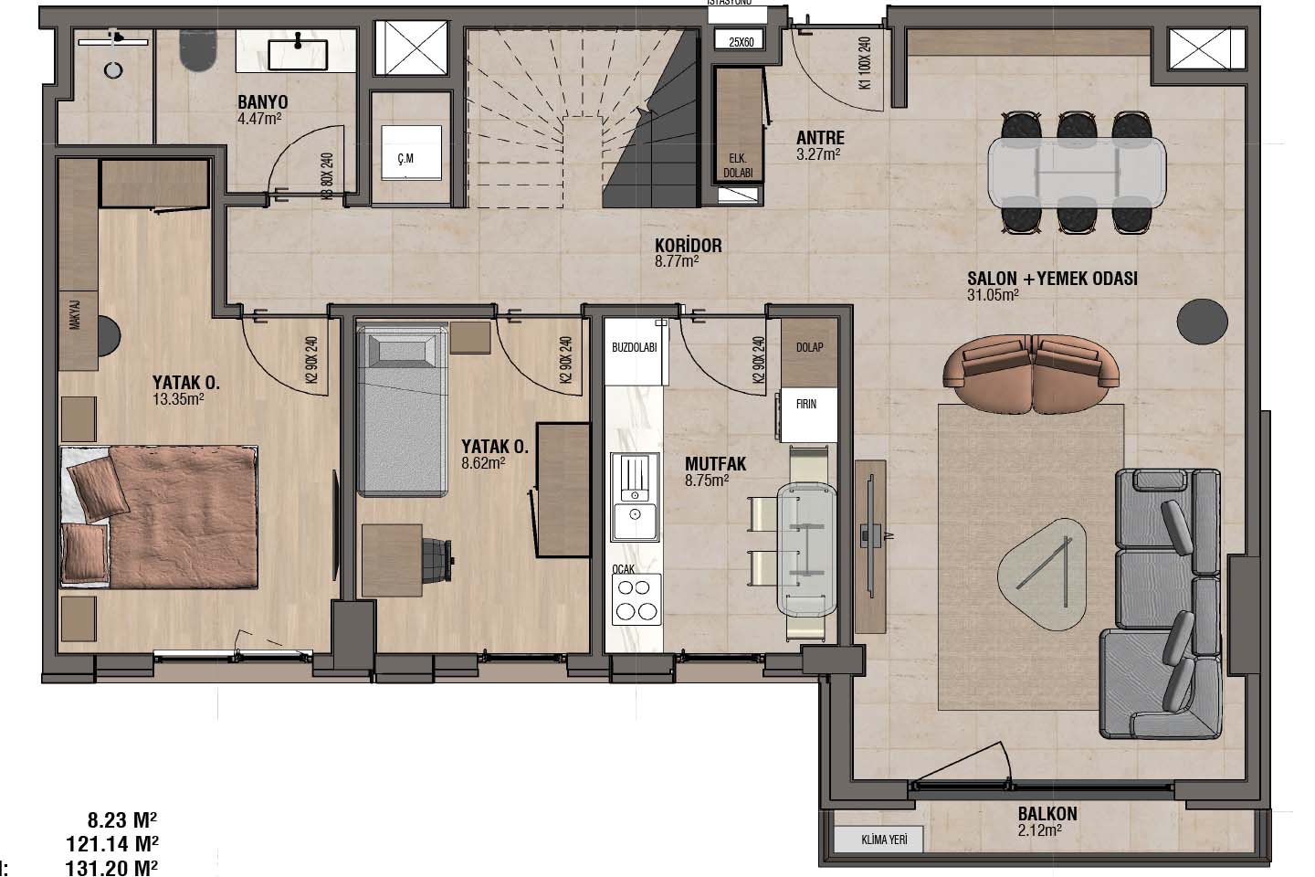 مساحات تبدأ من 60 ولغاية 226 متر مربع.