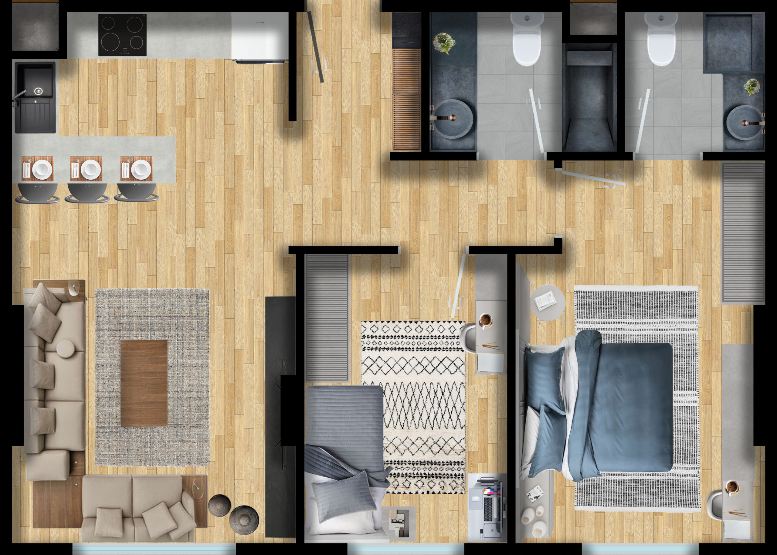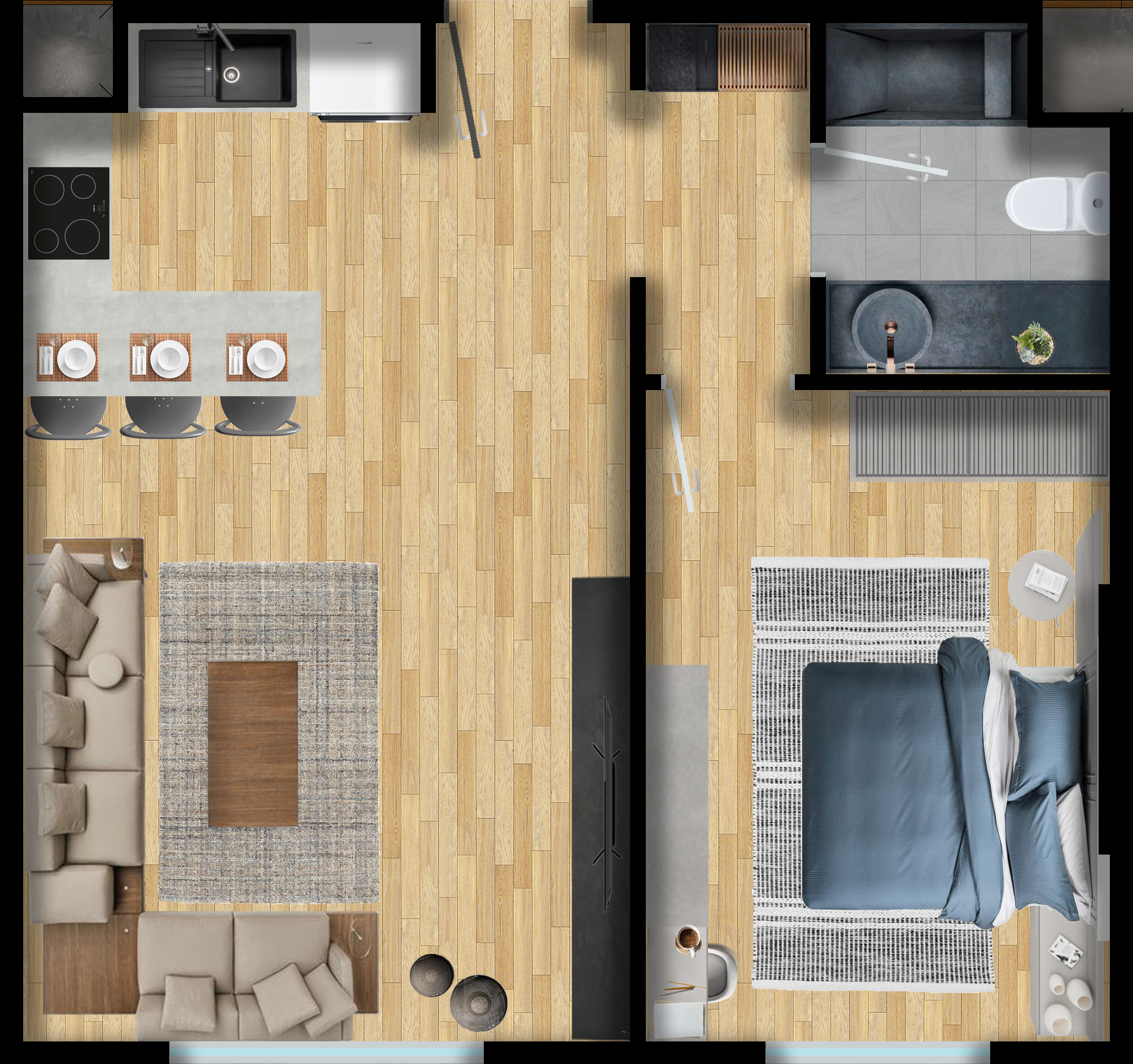مساحة المشروع 7.872 متر مربع، مكون من بنائين، بارتفاع 14 و15 طابقًا، ويتضمن إجمالاً 217 شقة. يقدم المشروع نماذج شقق 1+1و2+1، واستخدام مواد عالية الجودة في البناء.