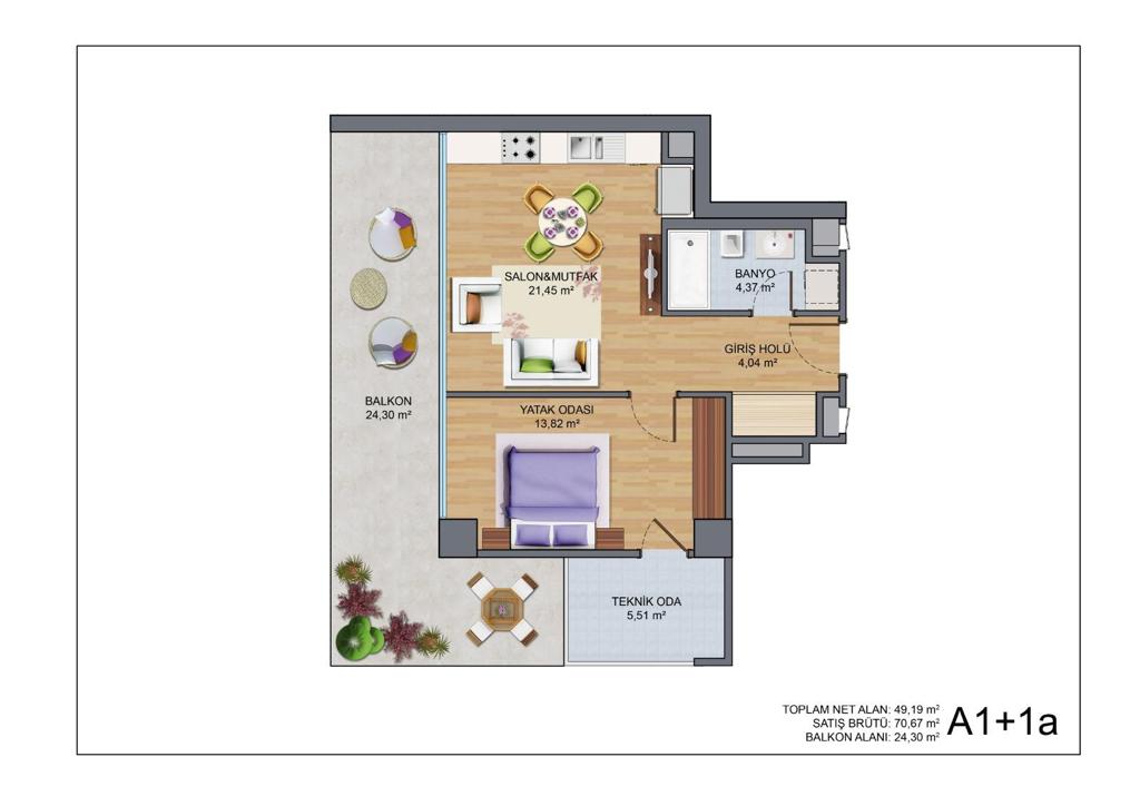 .لدينا شقق 1+1، مثالية للأفراد أو الأزواج، بمساحات تتراوح من 80.49 إلى 82.48 مترمربع